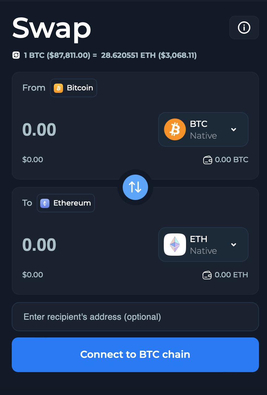 1\. Go to [ThorWallet ](https://app.thorwallet.org/swap?fromAsset=BTC.BTC\&toAsset=ETH.ETH)and click "Connect."
