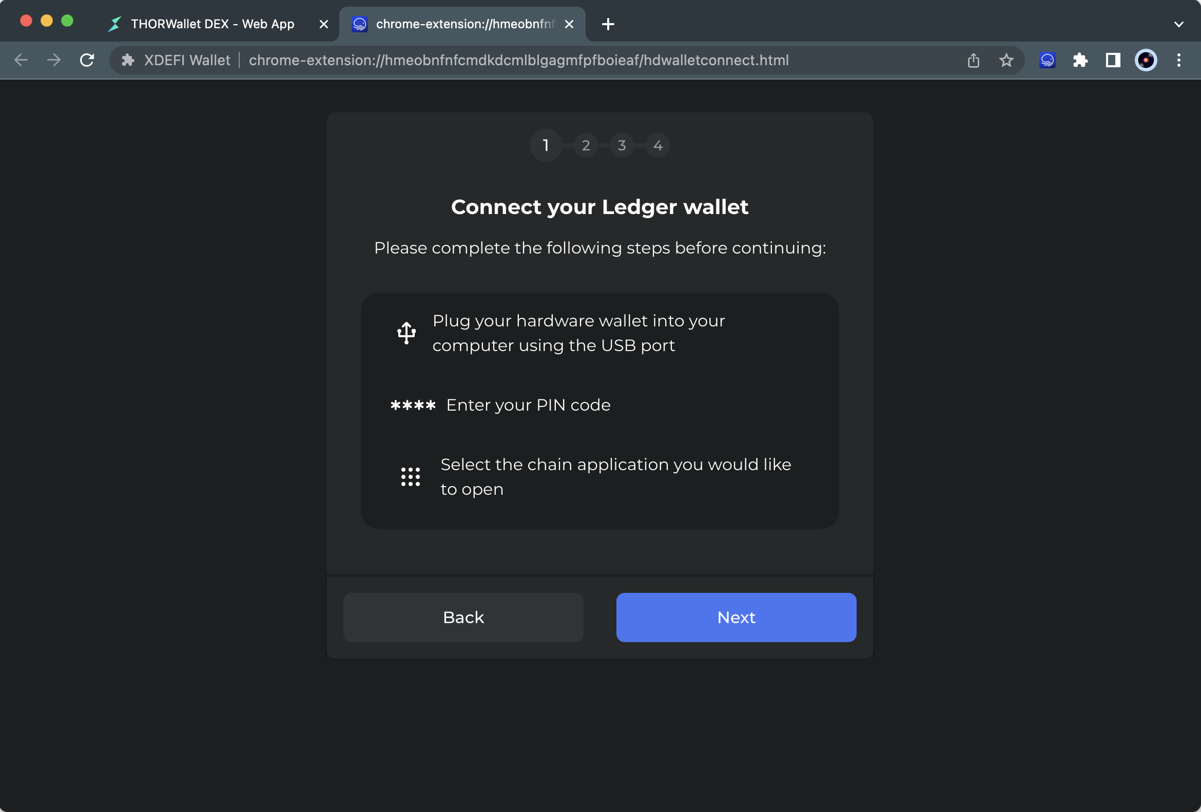 Once complete, go back to XDEFI and repeat the process to add hardware wallets to XDEFI from other Ledger chains.