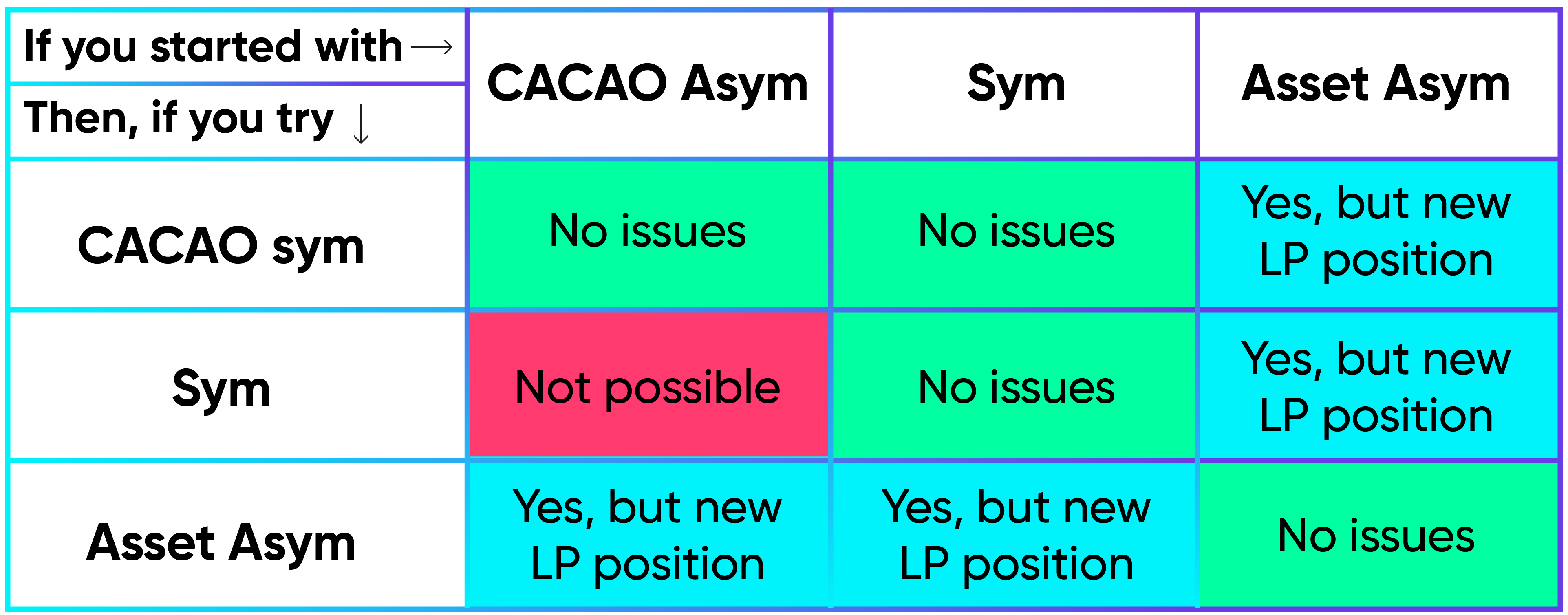 * You will be able to add liquidity asymmetrically with CACAO later but it would create a new LP position