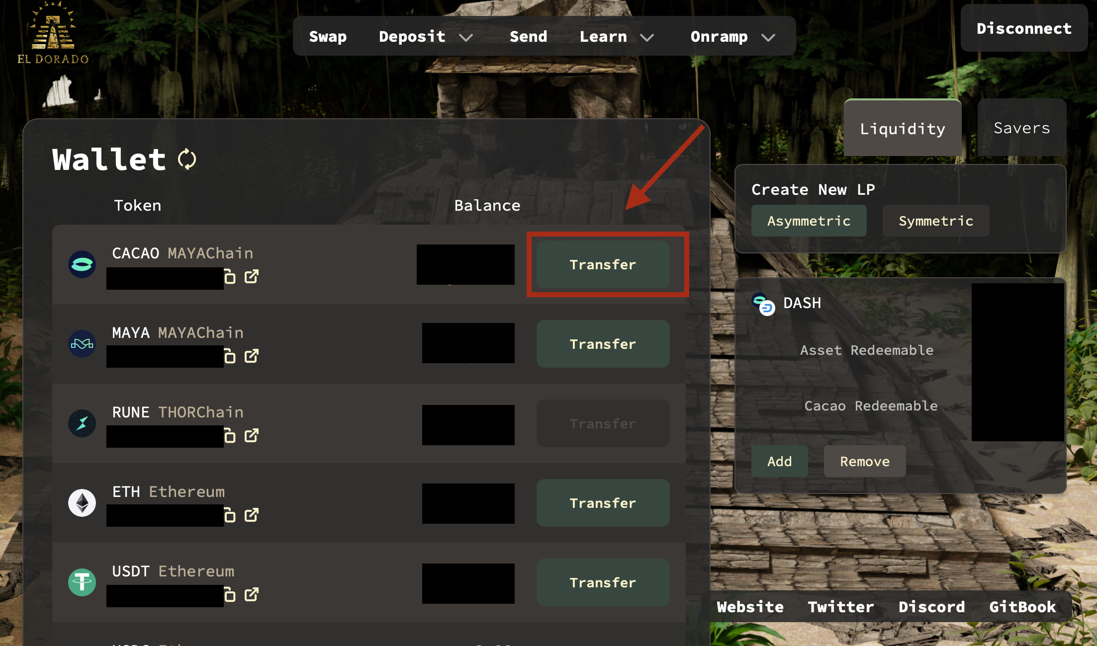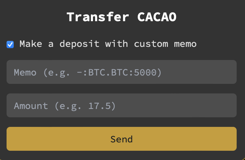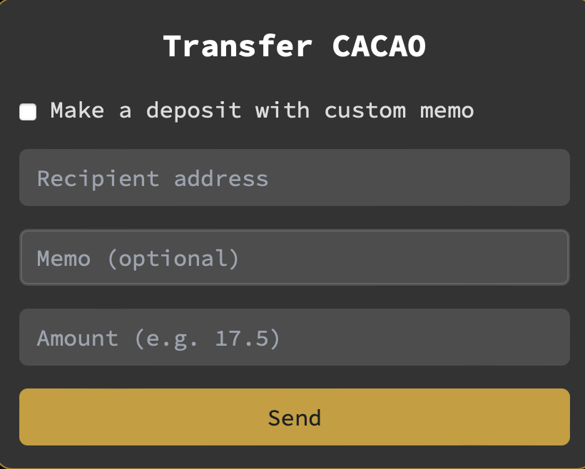 Click on `Transfer` button next to your CACAO balance.