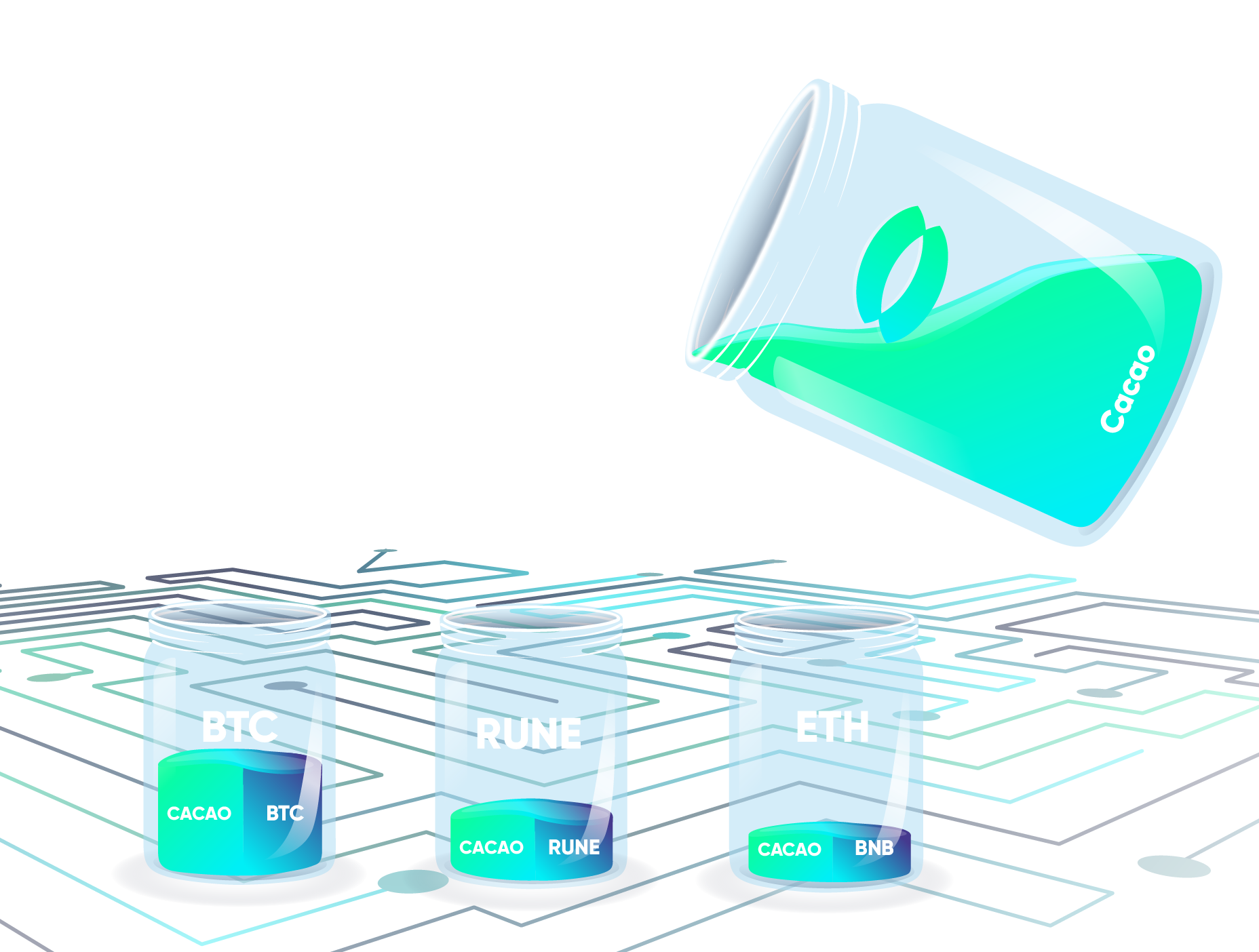 C) That’s it! Participants become Liquidity Providers by having their contributed assets + their new $CACAO tokens deposited inside Maya’s pools, facilitating swaps to other users and earning a share of the fees generated.