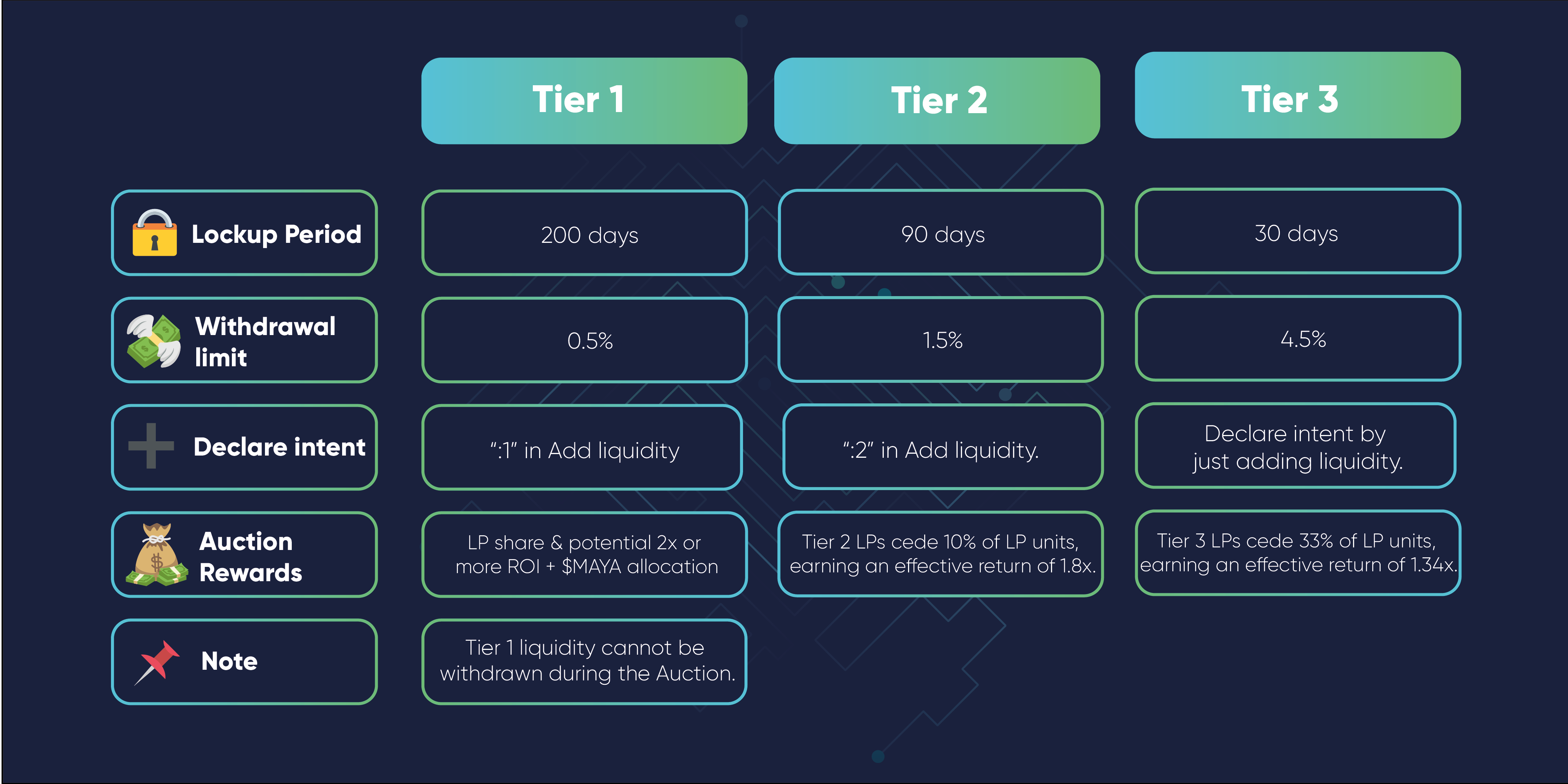 Importantly, Tier 1 LPs also receive an allocation of the $MAYA token. Please refer to Part 2 of this Whitepaper for more details.